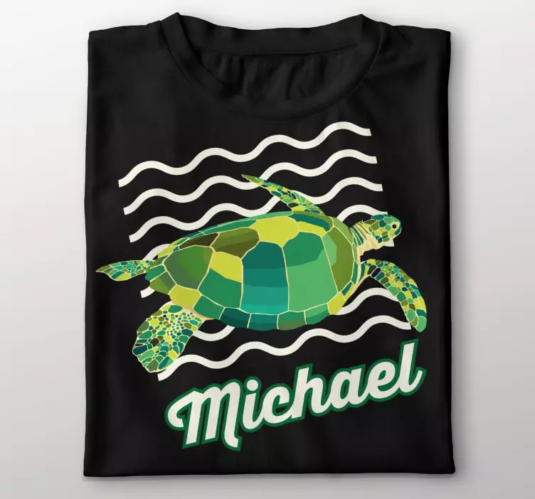 Referentienummer: T4978Dit ontwerp toont een levendige groene zeeschildpad die gracieus zwemt. De ingewikkelde patronen en kleuren roepen een gevoel op van de schoonheid van de oceaan. De vloeiende lijnen op de achtergrond voegen beweging toe, terwijl de naam een persoonlijke touch geeft, waardoor het een uniek statementstuk wordt.
