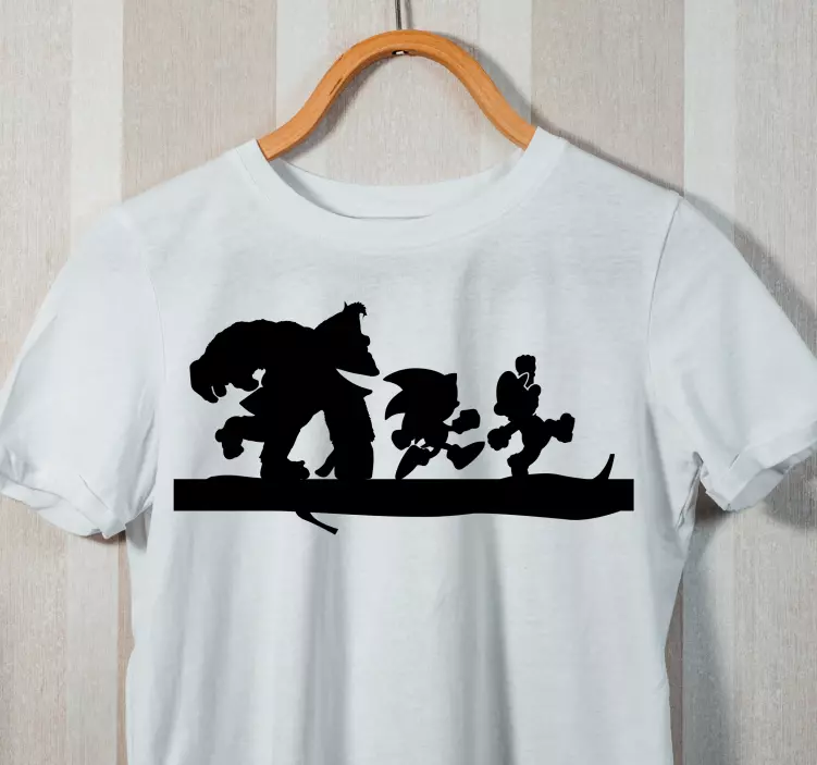Referentienummer: T4646Dit ontwerp toont dynamische silhouetten van geliefde helden in een speelse samenstelling. Het opvallende contrast tegen een witte achtergrond benadrukt beweging en energie, wat aantrekkelijk is voor fans van avontuurlijke thema's. Een ideale keuze om bewondering voor iconische personages te tonen.