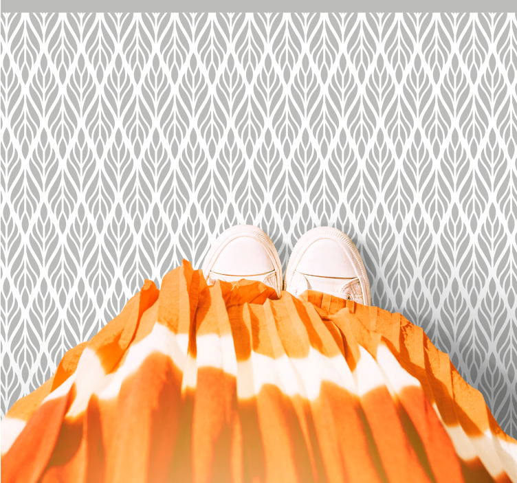 Referentienummer: R15009Een rustgevende illustratie toont een verfijnd bladerenpatroon in grijstinten op een lichte achtergrond. Het ontwerp straalt eenvoud uit met zijn ingewikkelde details, die de elegantie van de natuur vastleggen, terwijl het wordt aangevuld met een levendige oranje kleur die warmte toevoegt aan de algehele esthetiek.