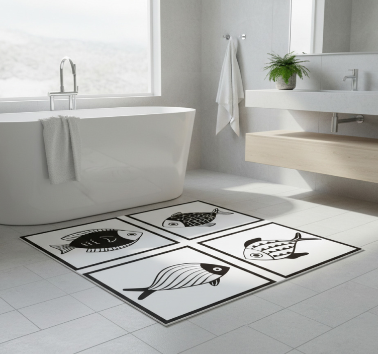 Referentienummer: R21305Transformeer uw badkamer met ons vinyl tapijt badkamer met mooi vispatroon tegels, dat een prachtig vispatroon heeft dat elke ruimte opvrolijkt. Dit grafische ontwerp brengt een speelse en elegante sfeer in uw badkamer, waardoor het een uitnodigende plek wordt. Het vispatroon voegt niet alleen een visueel element toe, maar biedt ook een unieke uitstraling die perfect is voor uw interieur.