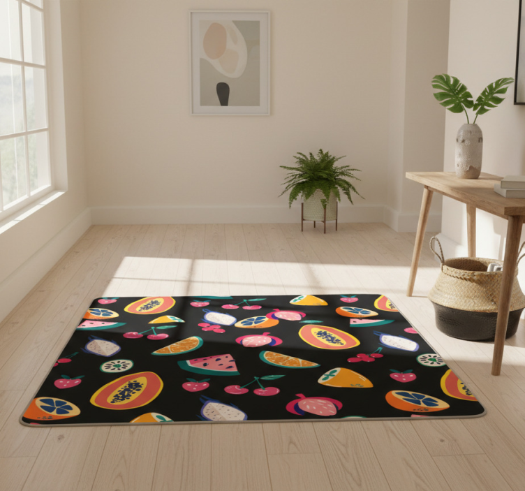 Vinyl tapijt natuur met kleurrijke vruchten op zwart