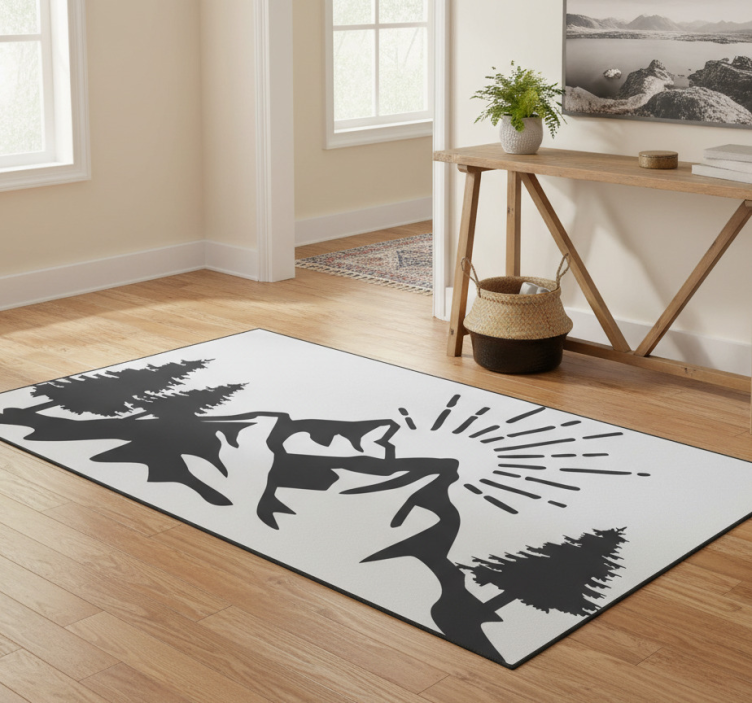 Referentienummer: R21906Laat je verleiden door de prachtige uitstraling van ons vinyl tapijt natuur zon bergsilhouet. Dit unieke ontwerp brengt de schoonheid van de natuur in je interieur met een adembenemend silhouet van bergen onder een stralende zon. De harmonieuze kleuren en gedetailleerde afwerking zorgen voor een warme, uitnodigende sfeer in elke ruimte!