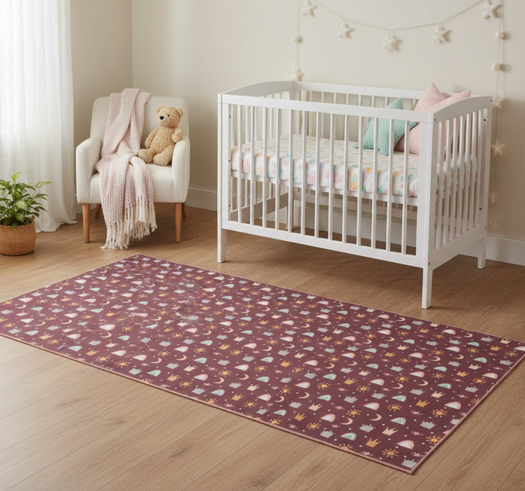 Vinyl tapijt slaapkamer met kroon sterren en regenbogen